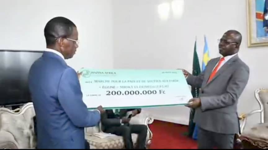 “This check of 200 million Congolese Francs, offered by the Pentecostal Church Light of the World (Église Pentecôtiste Lumière du Monde), responds to the Head of State’s call for support to the FARDC. It is a gesture of love towards our compatriots in the East, victims of repeated attacks by Rwandan troops,” said Mr. Tshilumbayi during the ceremony.